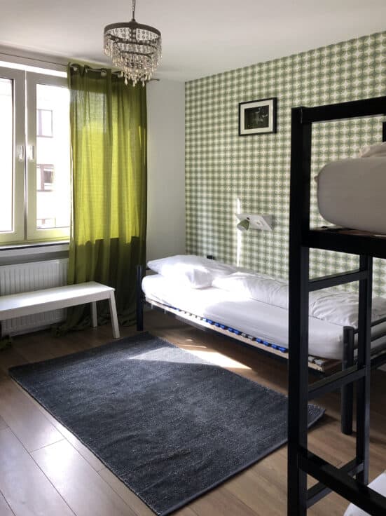 Fernseher auf den Zimmern? Gibt’s nicht, dafür aber schnelles, kostenloses WLAN im ganzen Haus. In der Gästeküche könnt Ihr Euch außerdem selbst versorgen, zusammensitzen, andere Gäste kennenlernen oder einfach bei einem Spiel oder mit einem Buch aus der kleinen Bücherecke entspannen.