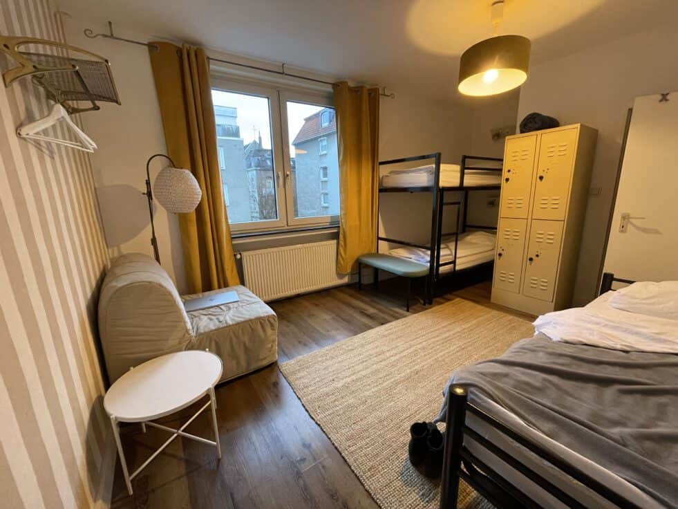 Am häufigsten findet Ihr bei uns 4-Bett-Zimmer mit eigenem Bad. Die vermieten wir aber auch gern komplett, zum Beispiel als Doppel-, Einzel- oder Familienzimmer. Und falls Ihr zu fünft seid, kein Problem: In viele Zimmer passt noch ein zusätzliches Bett.